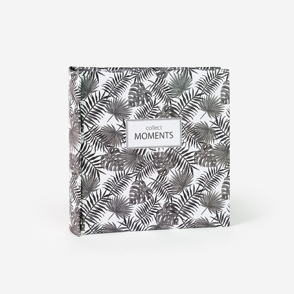 A capa de cartão do Álbum Analógico Tropical, disponível nas cores verde e cinza, apresenta um padrão tropical que confere um toque sofisticado ao álbum.
