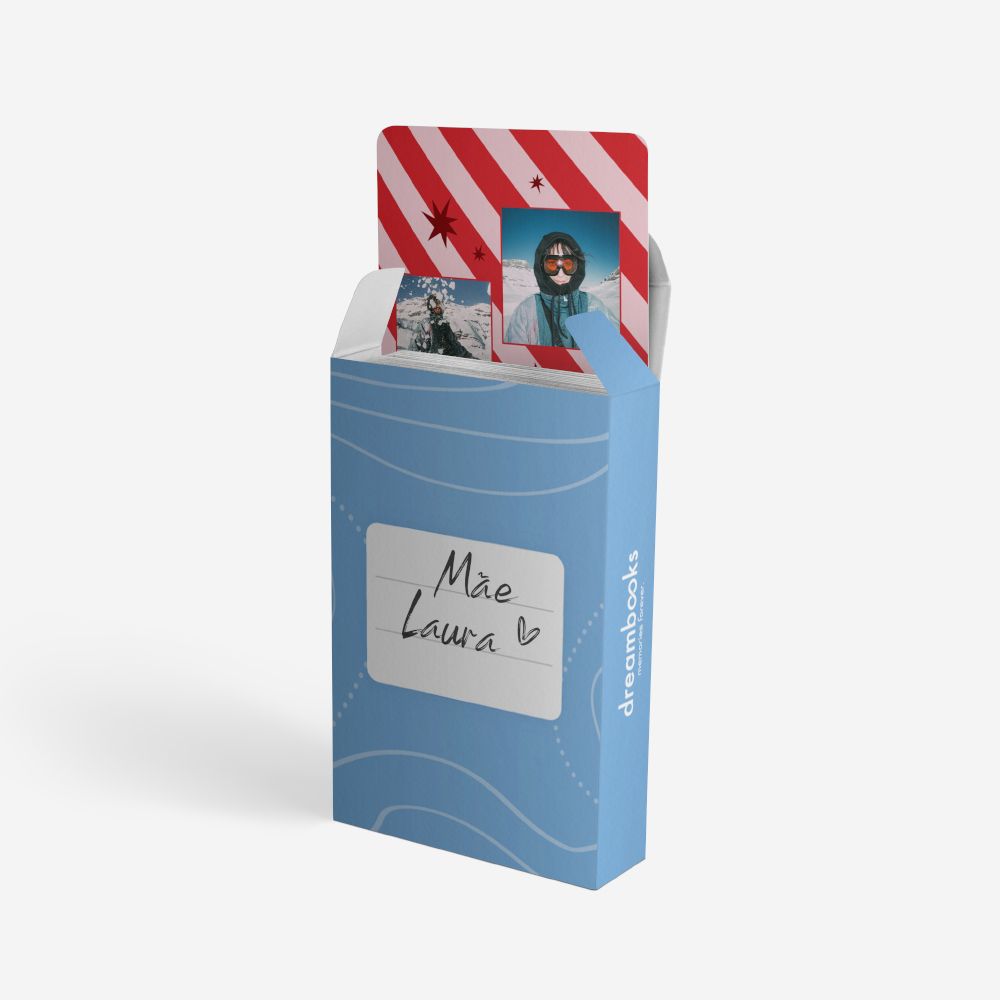 Vem com uma caixa original de 2,5 cm de profundidade, perfeita para proteger as tuas cartas e para personalizares com o teu nome ou uma dedicatória especial.