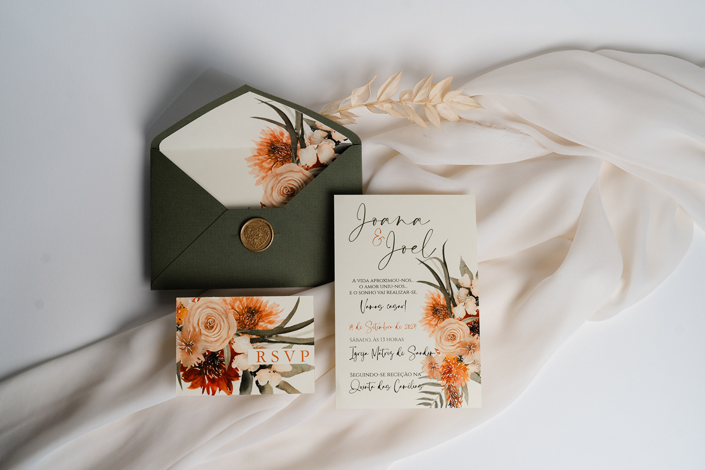 Apesar destas serem características comuns em todos os convites de casamento, é importante referir que o tipo de convite vai diferindo consoante a tendência para o respetivo ano, e por isso, seguem aqui cinco tendências de convites de casamento para 2025.