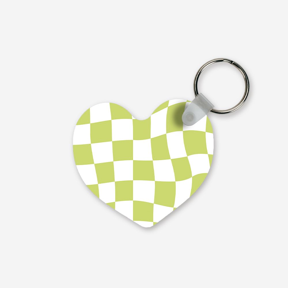 Um porta-chaves em forma de coração que troca o básico por um padrão checkered distorcido em verde lima. É o pequeno detalhe que faltava para levares a tua foto favorita sempre contigo, com um estilo retro e super descontraído.