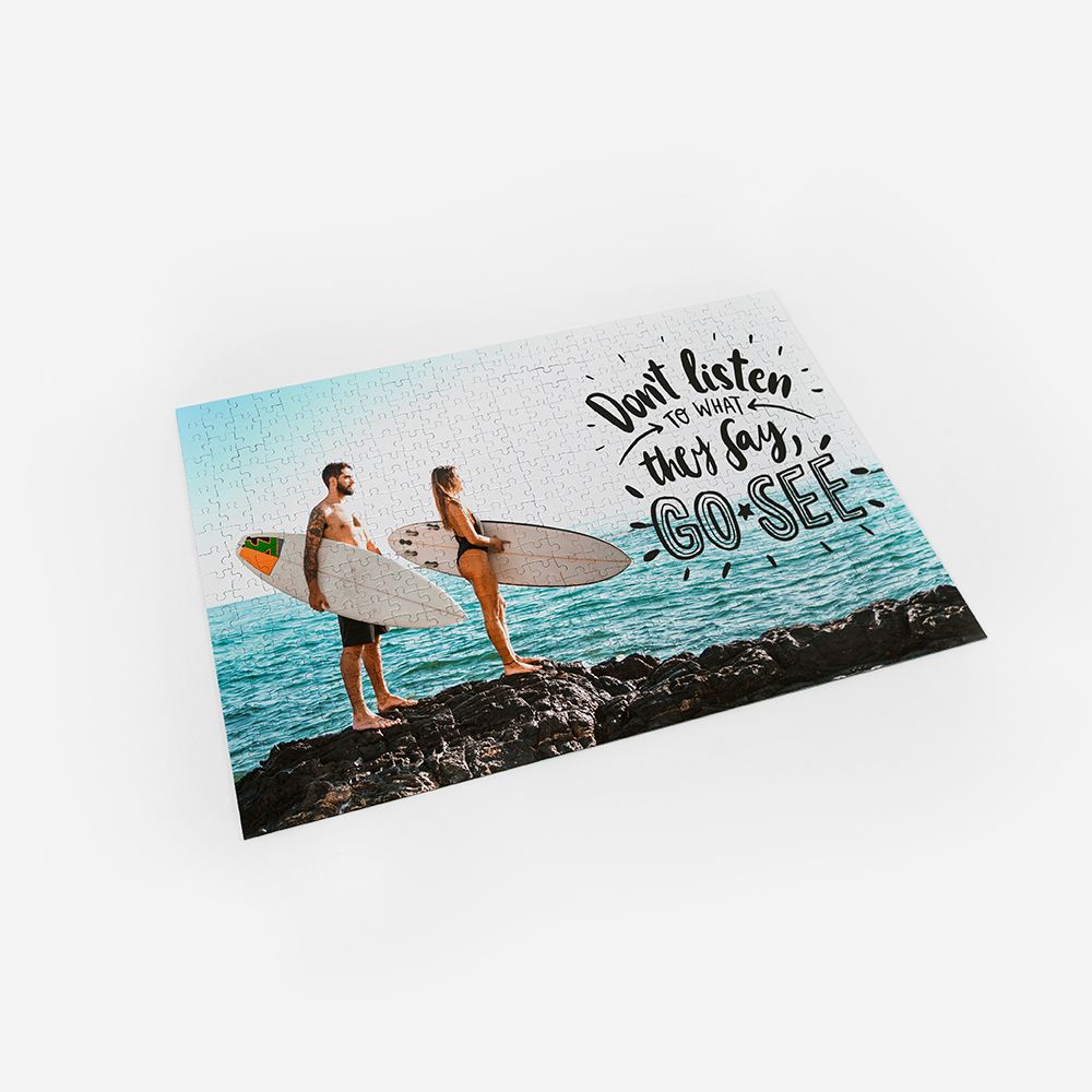 A Dreambooks disponibiliza três formatos diferentes para que possas escolher o tamanho que mais se adequa às tuas fotos e o que mais se enquadra na tua capacidade de montar puzzles. Podes escolher um puzzle de 96 peças, no tamanho 21x29cm, 192 peças, no tamanho 29x42cm, ou 500 peças, no tamanho 33x47cm.